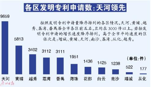 天河区发明专利申请量名列全市各区之首,增长率达到81.9%,比上年同期增长多出62.4个百分点,占全市发明申请量的30.3%。其中企业发明申请同比增长112.4%,新增506家企业实现发明申请“灭零”,可看出天河区的企业创新实力大幅增强。