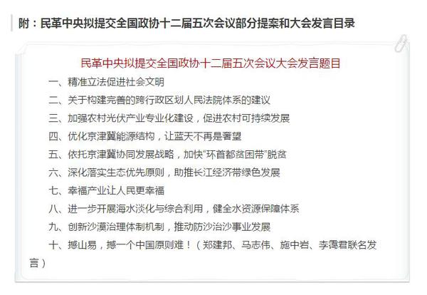 小编了解到,今年,民革中央提案将本着四大原则:1、实事求是;2、求质量不求数量; 3、以诤友的态度讲话; 4、没有调查就没有发言权,重点提案说足,不重要的足了也不说。