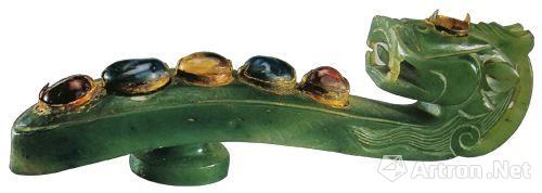 明代碧玉嵌宝带钩 定陵出土