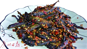 煎好的山溪鱼仔色泽金黄,鲜红的辣椒末点缀其间,看上去赏心悦目。挟一条鱼仔入口,口感外酥里嫩。在阵阵辣味的烘托下,鱼肉越嚼越鲜,带着一股股塘鱼和河鱼所不具备的山野香甜。这种方式做出来的鲜椒山溪鱼仔,最适合下酒,但也有不少妇女儿童把它当成零食,一边看电视一边大嚼山溪鱼仔,乐在其中。