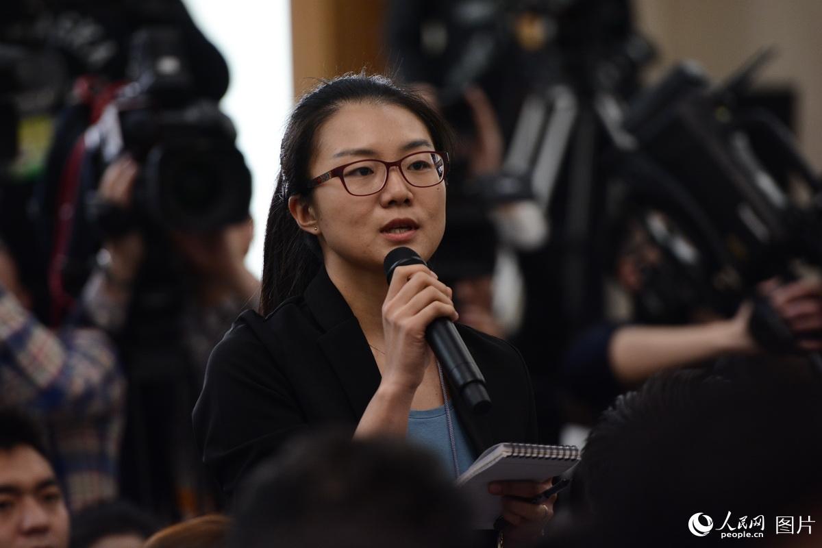 十二届全国人大五次会议于3月4日上午11时在人民大会堂新闻发布厅举行新闻发布会,由大会发言人傅莹就大会议程和人大工作相关的问题回答中外记者的提问。图为中国日报记者提问。人民网记者 张启川 摄