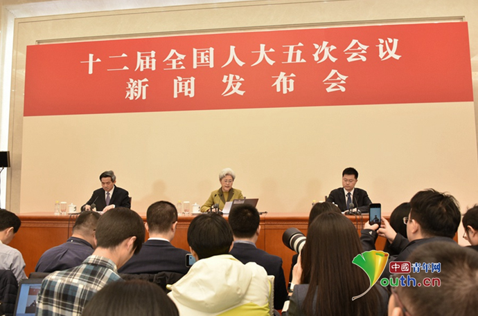 3月4日上午11时,十二届全国人大五次会议在人民大会堂新闻发布厅举行新闻发布会。中国青年网记者 刘洪侠 摄