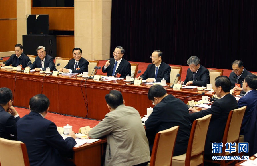 3月4日,中共中央政治局常委、全国政协主席俞正声看望出席全国政协十二届五次会议的社会科学、新闻出版界委员并参加讨论。 新华社记者姚大伟 摄