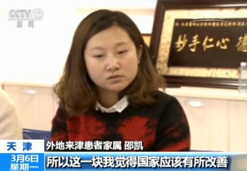 患者家属杨翠平:社??ㄒ侨寄芡ㄓ媚堑比缓?,您看我们沧州离这那么近,好多都来这看病,但是我们东跑西跑,跑了多少家,盖了章签了字,才能上这里来。