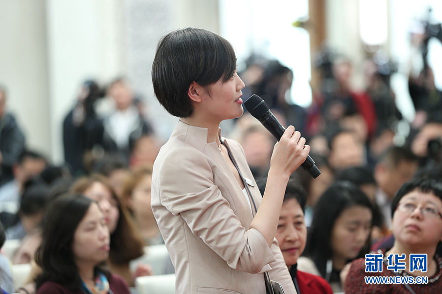 图为中国青年报记者在会上提问  新华网/中国政府网 翟子赫 摄
