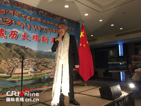 中国驻比利时大使曲星出席藏历新年联欢会。(国际在线图)