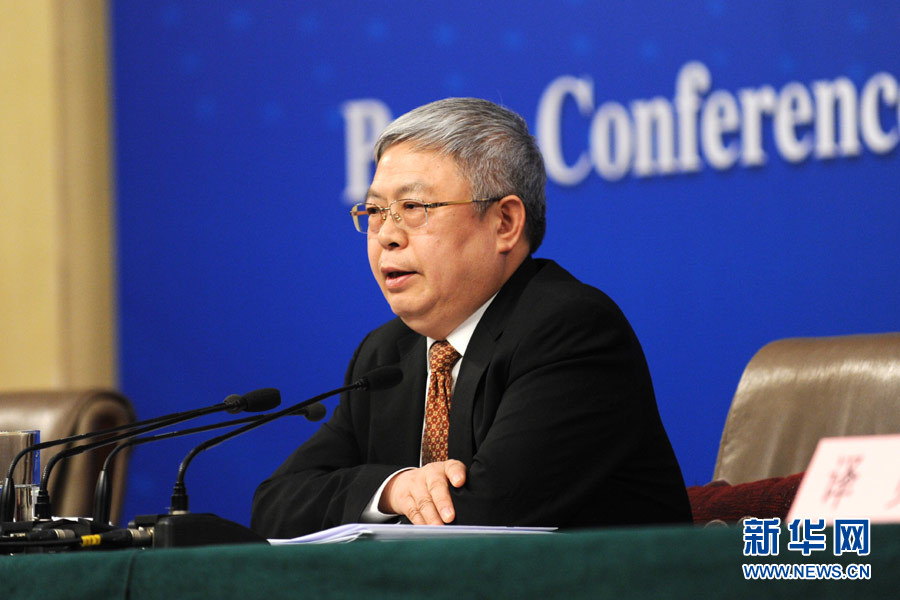 图为刘永富回答记者提问