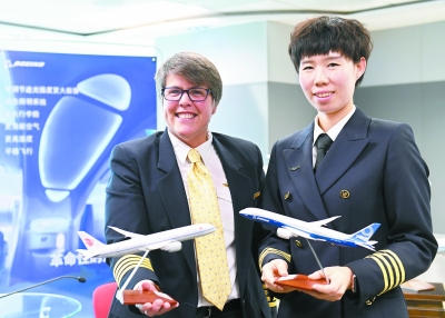 波音787女机长郭慧(右)女试飞员海瑟罗斯(左)
