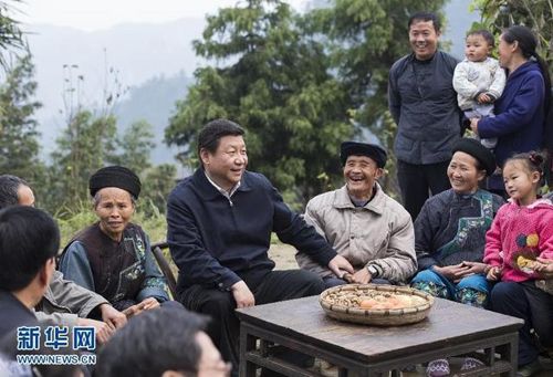 2013年11月3日至5日,中共中央总书记、国家主席、中央军委主席习近平在湖南考察。这是3日下午,习近平在湘西土家族苗族自治州花垣县排碧乡十八洞村同村干部和村民座谈。新华社记者王晔摄