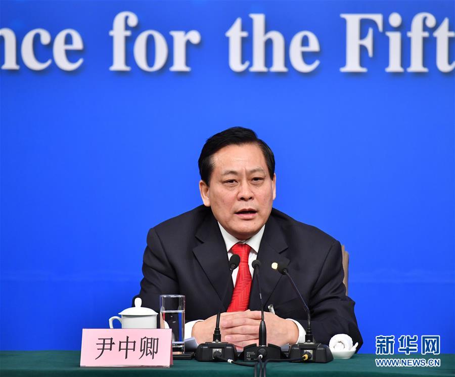 尹中卿在回答记者提问。 新华社记者 李鑫 摄