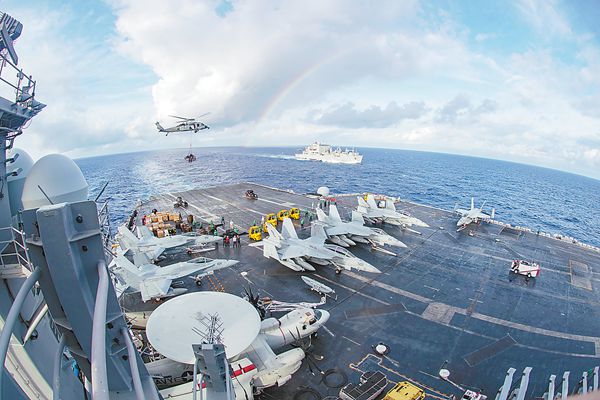 2月初美国“卡尔·文森”号核动力航母在太平洋上演练。