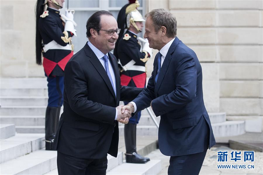 资料图:法国总统奥朗德(左)会见欧洲理事会主席图斯克(右)
