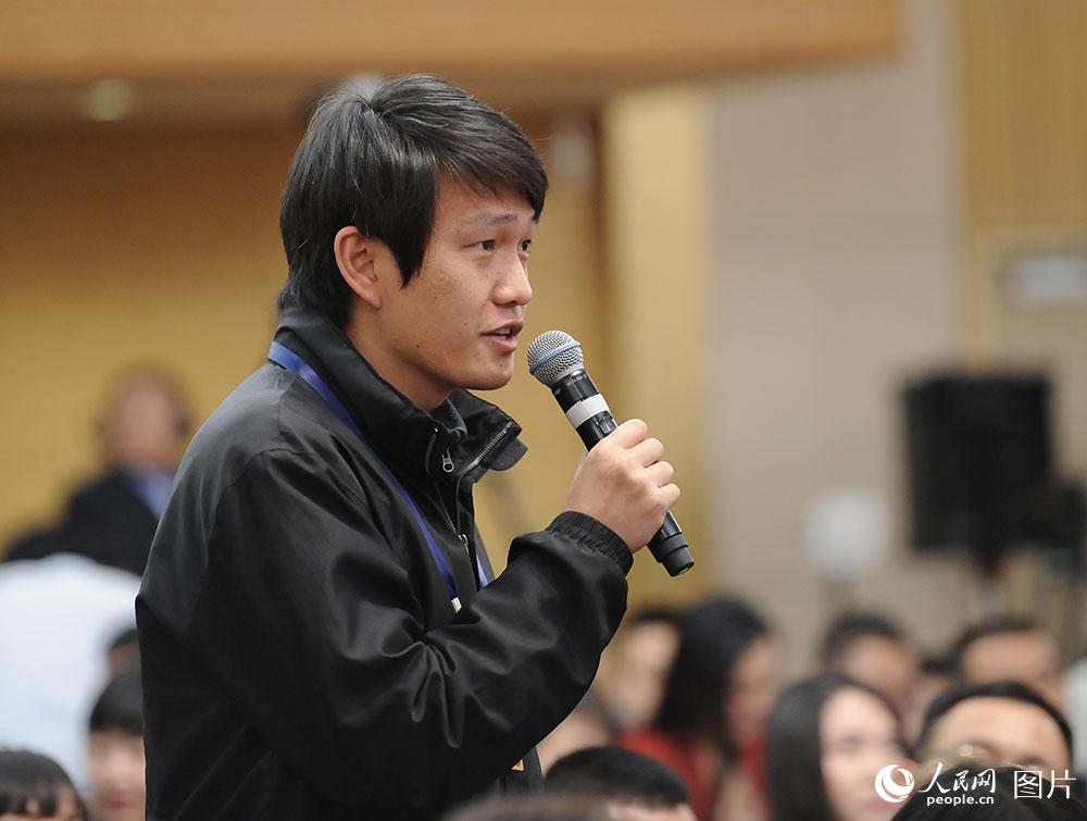 湖北日报记者就“义务教育年限问题”现教育部部长现场提问 人民网记者 郝勇 摄