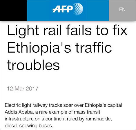 关键词:中国 埃塞俄比亚 轻轨 外媒