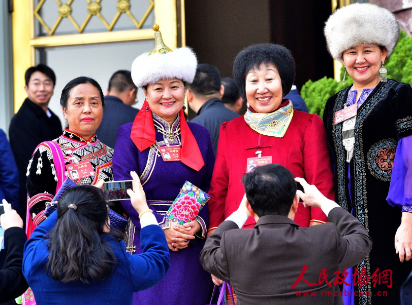 少数民族委员在会议开幕前互相合影留念。