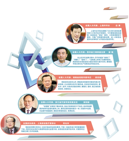 今年的政府工作报告提出,深入推进简政放权、放管结合、优化服务和财税金融、国有企业等重要领域和关键环节改革。代表委员们认为,进一步简政放权,除烦苛之弊、施公平之策、开便利之门,极大释放了市场活力和社会创造力,要更深层次推进“放管服”改革,为市场增活力、为发展添动力、为改革聚心力。