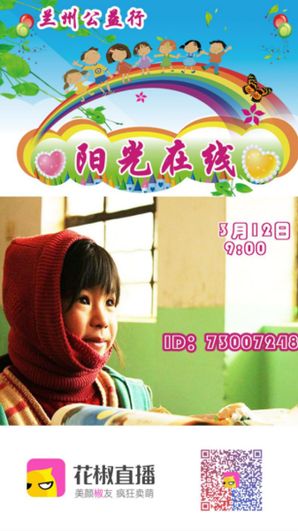 3月12日,甘肃省兰州市榆中县马坡乡大雪封路,寒风凛冽,但这并不能减消花椒主播公益活动的热情。由花椒直播几名主播发起的“阳光在线”花椒主播兰州公益行活动在这里举行?;疃校ń分鞑ノ钡匦⊙?9名学生送去了学习用品和生活用品,直播所获得的收益花椒币441973,折合人民币4万多元也全部捐献给当地贫困家庭和学校。