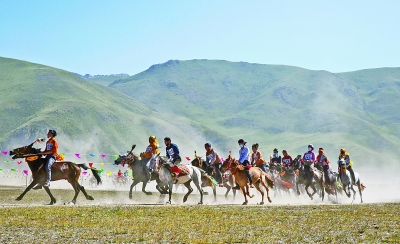 青海玉树,藏族游牧民在赛马。光明图片/视觉中国
