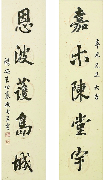 1990年秋,伍嘉恩在香港有一个专门陈列明式家具的空间,还只有英文名字,王世襄为她题赠了中文名“嘉木堂”。第二年春节,王世襄又特别为伍嘉恩寄去一副亲笔书写的楹联:“嘉木陈堂宇,恩波护岛城。”既嵌入她和店铺之名,也有慰勉和祝福的意思。他知伍嘉恩中文不好,写了一封英文信附在后面,为她仔细讲解了楹联的意思。