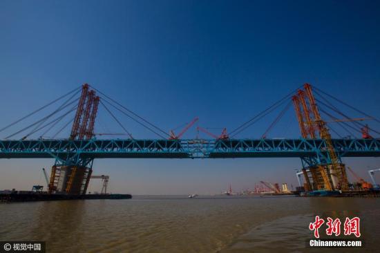 资料图片,世界最大跨径重载公铁两用钢拱桥合龙。 王俊荣 摄 图片来源:视觉中国