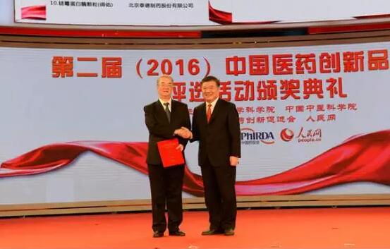 出席“第二届(2016)中国医药创新品牌系列评选活动”颁奖典礼