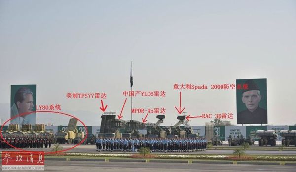 从另一张现场图中可见巴军方最新服役的中国产LY-80中程防空导弹发射车,以及YLC-6M防空雷达等装备。