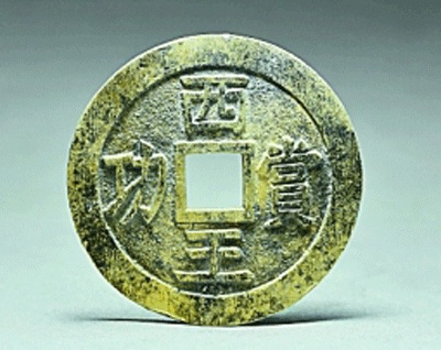 图③:考古发掘出水的“西王赏功”金币。四川省文物考古研究院供图