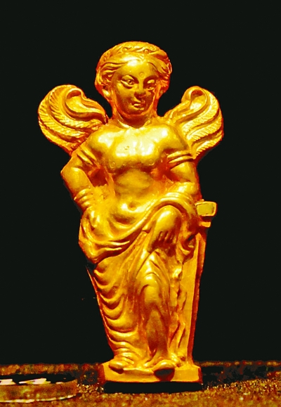 ④蒂拉丘地出土的黄金制成的“带翅膀的阿佛洛狄特”。记者 李韵摄/光明图片