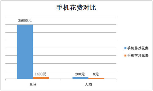 最近,儿子讲起他们班上有“土豪”同学给游戏充值5000元的事情,周老师听到后觉得很震惊,想想自己和其他家长平时在教育软件上的花费非常少,觉得这是个巨大的反差,所以萌生了调查手机学习和手机游戏花费对比的念头。