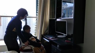 3月的一个下午,13岁的浩浩躺在沙发上,嚷着要玩电脑游戏。蔡雪群赶紧将一把电脑椅移到沙发边,随后再将儿子抱到电脑椅上,推进卧室。