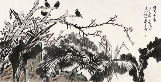 如果说笔墨决定了大写意花鸟的格调高低、表现力强弱的话,那么章法布局则直接体现了画家的个性、气质和对绘画本质的参悟?;谎灾?,画家是否具备文人气质,观其章法布局便可见一斑,观其大写意花鸟的章法布局更可一见分晓。