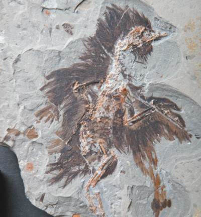 白垩纪中期琥珀中保存的一段具有原始羽毛的恐龙尾部。以中国地质大学(北京)的邢立达副教授为首的研究团队公布了白垩纪中期琥珀化石中保存的带羽毛恐龙尾部。标本为一只恐龙的尾部,包含了至少八枚尾椎,尾椎被三维的、具有微观细节的羽毛包围,标志着人类首次发现保存在琥珀中的非鸟恐龙。