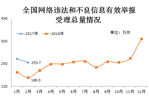 2月份全国网络举报部门受理有效举报255.7万件