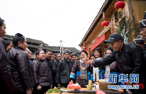 3月19日,贵州省黔东南苗族侗族自治州从江县西山镇陡寨村欢度侗族传统民俗节日“春社”,来自周边村寨的苗侗族同胞欢聚一堂,举行拦路迎宾、开塘捉鱼虾、吹奏芦笙、唱侗族河边歌、对唱开桌歌、吃“社饭”等活动,祈福风调雨顺、国泰民安。
