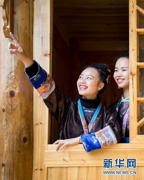 侗族姑娘在观看春社活动。新华网发(吴德军摄)