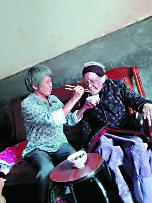 紫金县百岁孤寡老人李英生前得到刘运如无微不至的照料