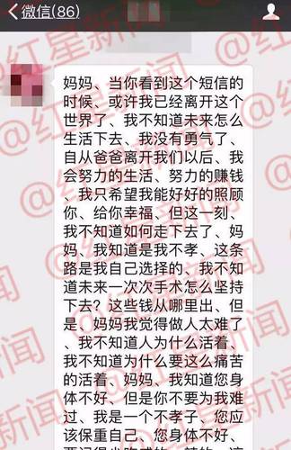 但是,真正让她绝望的是,女儿2月15日发来的那封遗书——“妈妈,当你看到这个短信的时候,或许我已离开了这个世界,我不知道未来怎么活下去,我没有了勇气……”