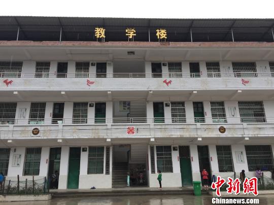 华山瑶族中心学校里,瑶歌传承基地的牌匾挂在教学楼的门口。 鲁毅摄