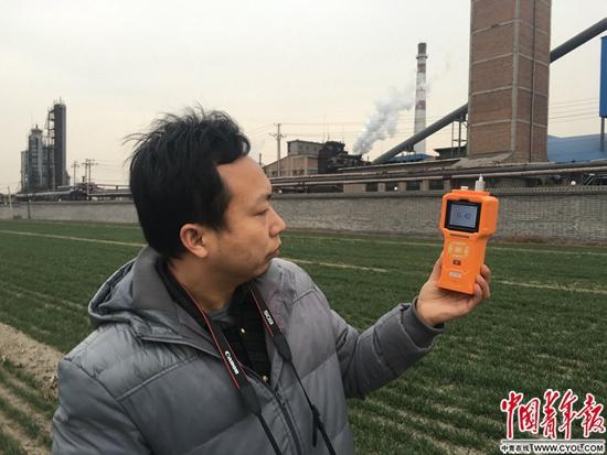 2月20日,民间公益环保组织“好空气保卫侠”在临汾周边监测企业是否存在违排情况。中国青年报·中青在线记者 胡志中/摄