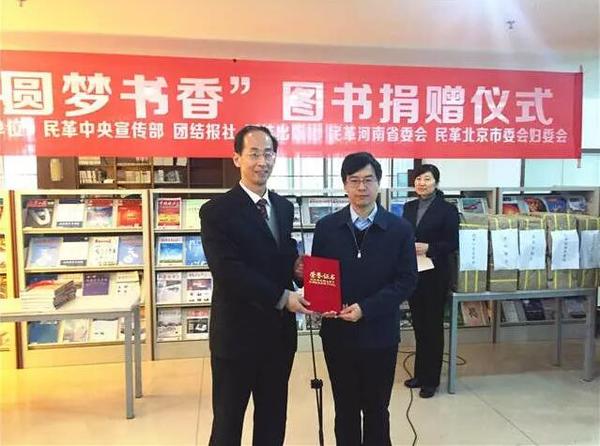 3月23日,民革中央宣传部、团结报社、团结出版社、民革河南省委会、民革北京市委会妇委会联合举办“圆梦书香”图书捐赠仪式。
