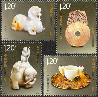 2012年8月29日我国邮政部门发行了《和田玉》特种邮票1套4枚、小全张1枚,为配合中国邮政发行《和田玉》特种邮票四枚邮票以及小全张,中国集邮总公司还于邮票发行当日特别发行了《和田玉》特种邮票首日封以及小全张首日封,套票首日封全套两枚,首日封首枚贴套票一、三图,第二枚贴套票二、四图,发行量20万枚。