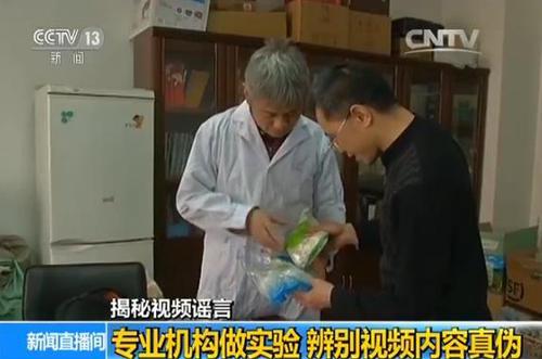 记者在北京一家超市,选购了手机视频中所说的品牌粉丝和紫菜,然后,找到了中国农业大学食品科学相关领域的专家,并按照视频中的方式重新做了实验。