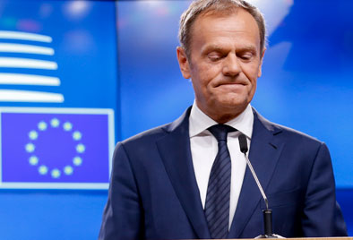 3月29日,在比利时布鲁塞尔欧盟总部,欧洲理事会主席图斯克就英国启动脱欧程序发表讲话。 新华社记者叶平凡摄
