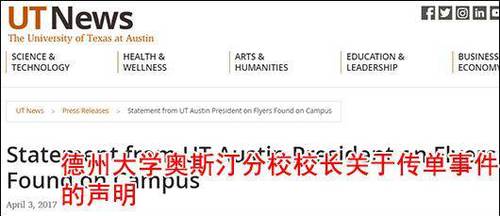 3日,UT校长Greg Fenves通过校园新闻网UTNews,严厉谴责张贴辱华传单的行为,对学生们的及时举报给予表扬,并称校方会积极处理此事。上周,UT刚刚公布了一份7页的“多样性和包容性行动计划”(Diversity and Inclusion Action Plan),旨在研究如何更好地教育来自不同背景,尤其是在历史上被边缘化的学生。
