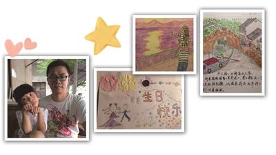 女儿也画画祝爸爸生日快乐。
