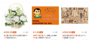 日前,记者通过调查发现,某购物网站上出现了诸如“跑腿扫墓”、“代客祭奠”等服务,价格从几百元至上千元不等,服务几乎遍布全国。