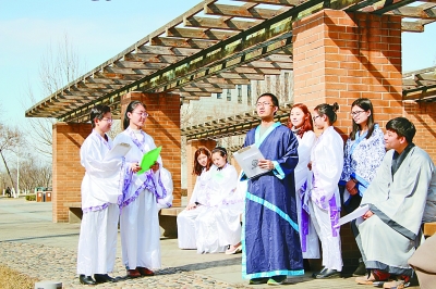 天津师大学生感受诗词之美。魏晋雪摄/光明图片