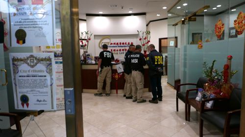 联邦机构突袭搜捕华人移民诈骗机构。(美国《世界日报》/李雪 摄)