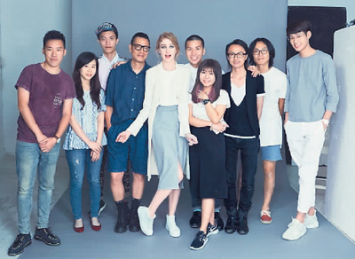 徐嘉威(左六)与北京电影学院的同学及模特在摄影棚合影(照片由受访者提供)。