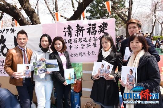 当天,旅日闽籍乡亲在热闹的活动现场,向日本游客推介“清新福建”旅游,受到众多日本民众瞩目。
